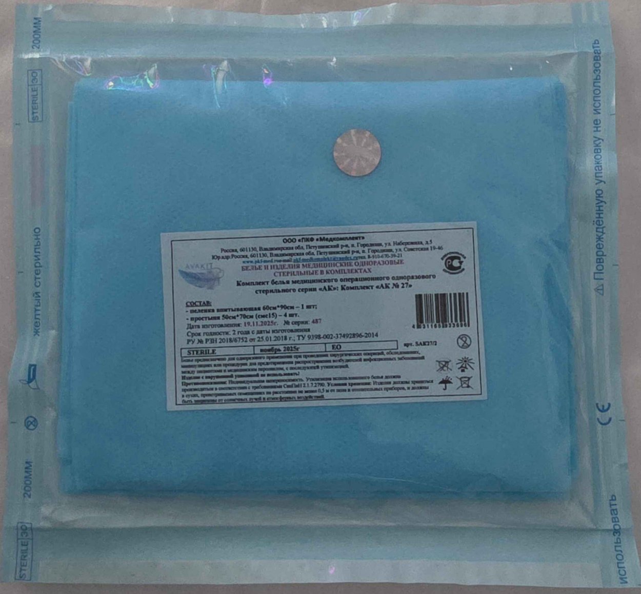 Белье одноразовое медицинское стерильное: Комплект серии «АК №27»