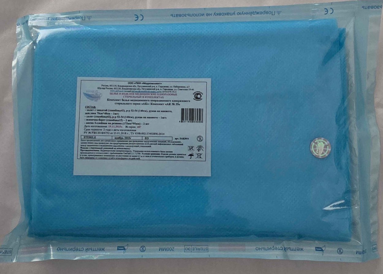 Белье одноразовое медицинское стерильное: Комплект серии «АК №39»