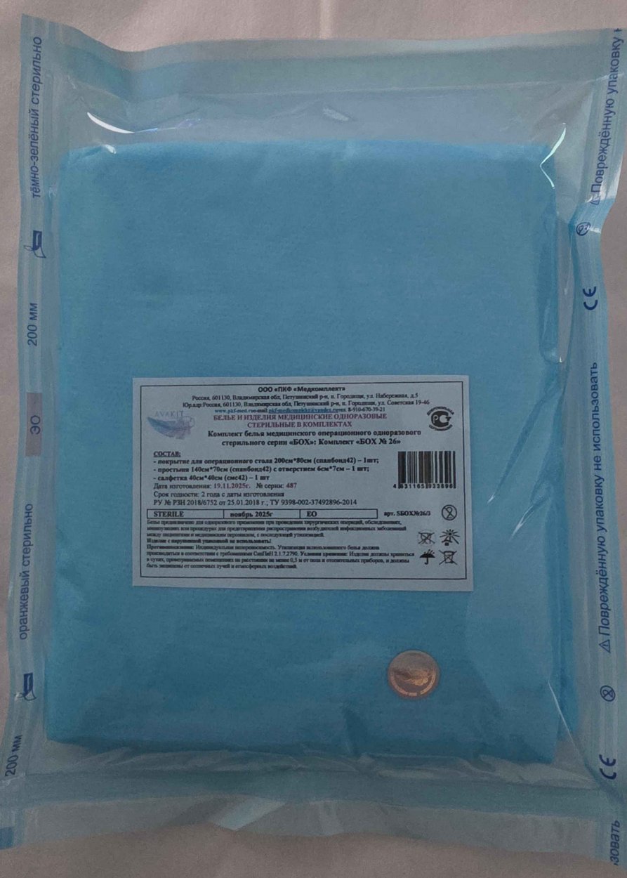 Белье одноразовое медицинское стерильное: Комплект серии «БОХ №26»